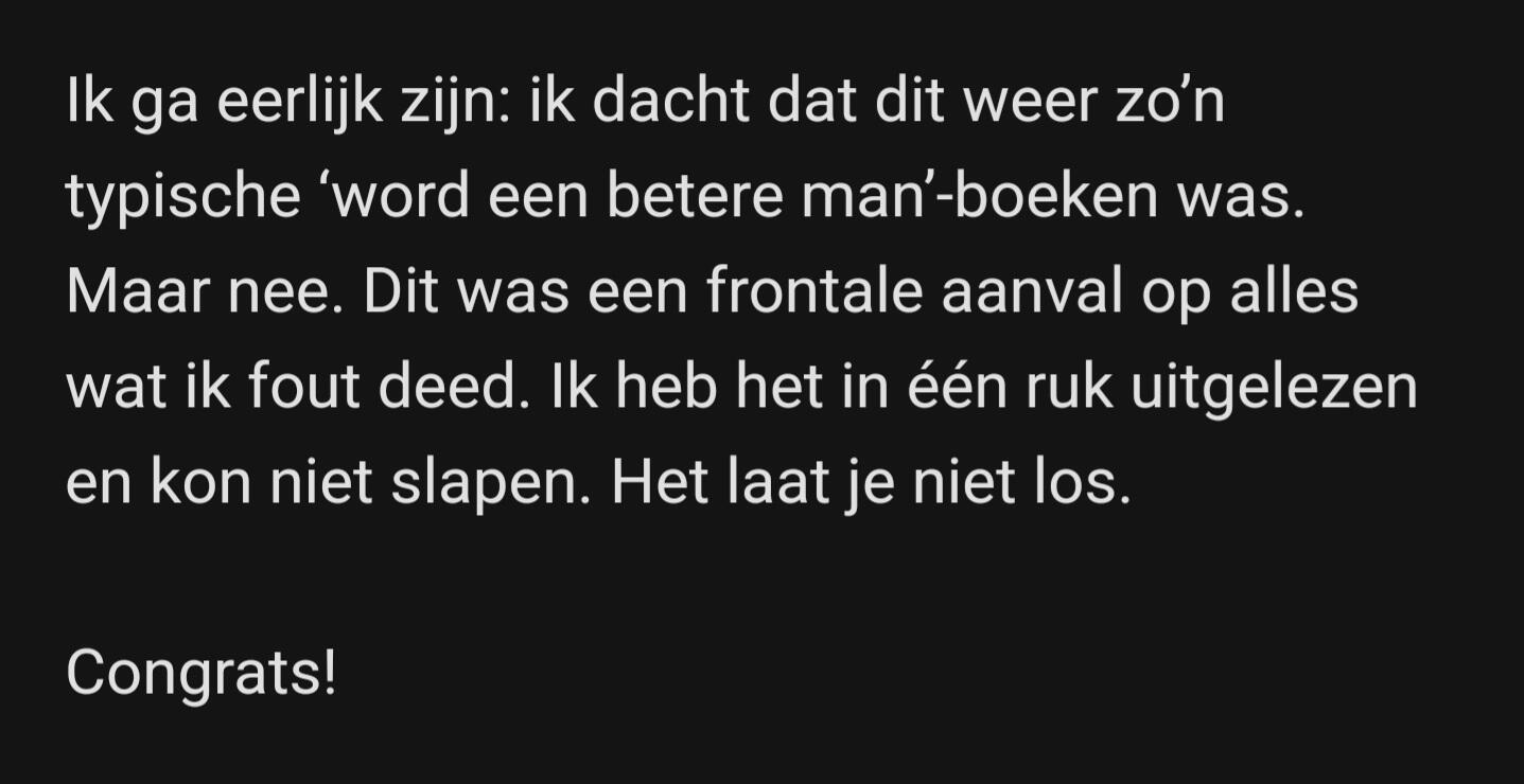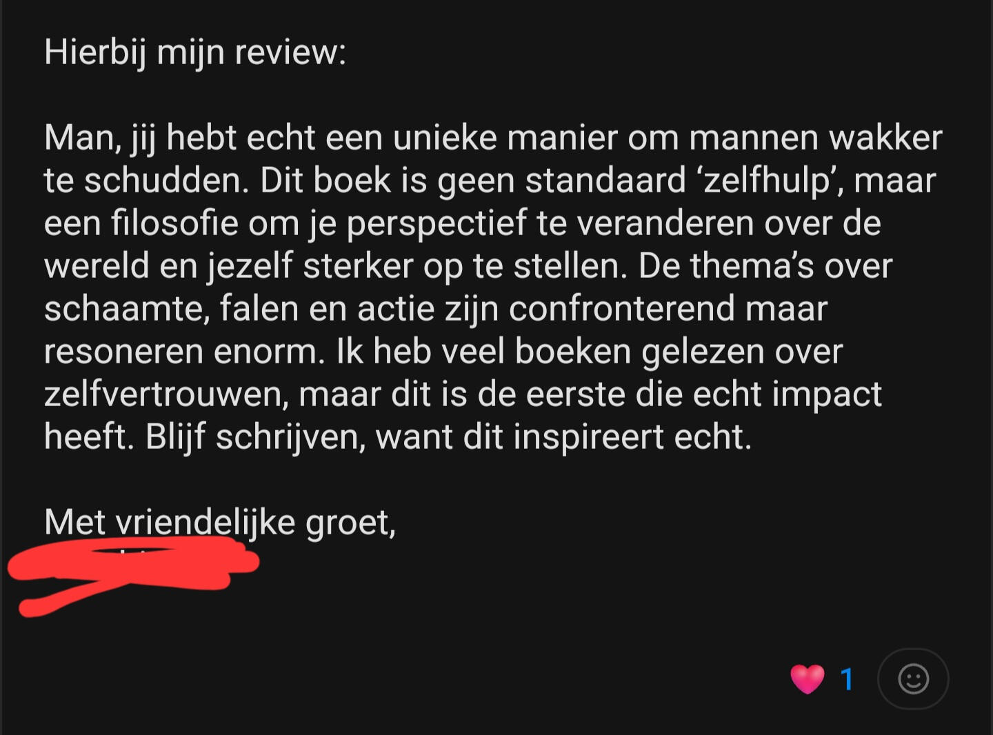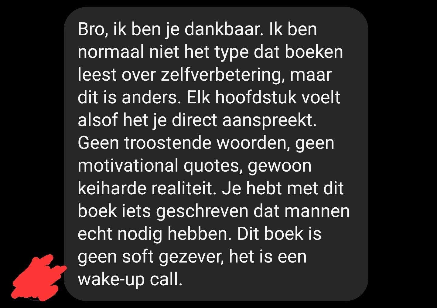 Dit boek is niet de zoveelste poging om een man 'man' te maken door het te verfraaien met dubieuze methodes, die op lange termijn toch geen reet uithalen.Het is net het omgekeerde.Het is opgebouwd met de vraag: "Wat had ik 10 of 15 jaar geleden zelf nodig gehad? Wat voor een product zou ik toen voor mezelf hebben willen creëren?"Het antwoord was glashelder.Dit boek is een poging om alle pleisters, windels en andere oplapmiddelen eraf te trekken en de man terug te brengen tot zijn puurste vorm:Een man die zonder afleidingen, volledig in lijn leeft met zijn verlangens.Je kan de beste boeken gelezen hebben, de meest effectieve oplossingen gevonden hebben, de beste coaches etc., maar zolang je dat robuuste zelfvertrouwen niet gekristalliseerd hebt om onbeschaamd te reiken naar wat je werkelijk verlangt, heeft dat allemaal geen waarde.Het is alsof men beschikt over de meest geavanceerde software in je brein, maar het besturingssysteem en hardware mist om die het effectief kan draaien.En dat gaan we aanpakken met dit boek.
